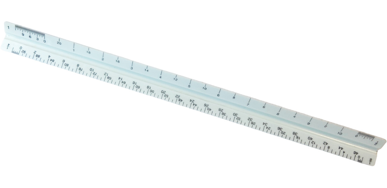 Тригранна масштабна пластикова лінійка з дюймовою шкалою. Масштабна лінійка виготовлена з міцного пластику і упакована в пластмасовий пенал. Являє собою тригранну лінійку з масштабними шкалами. Ця лінійка має шість шкал з масштабом: 1/8, 3/8, 1/4, 3/4, 1/2, 1, 1-1 / 2, 3, 12, 16, 3/16, 3/32.